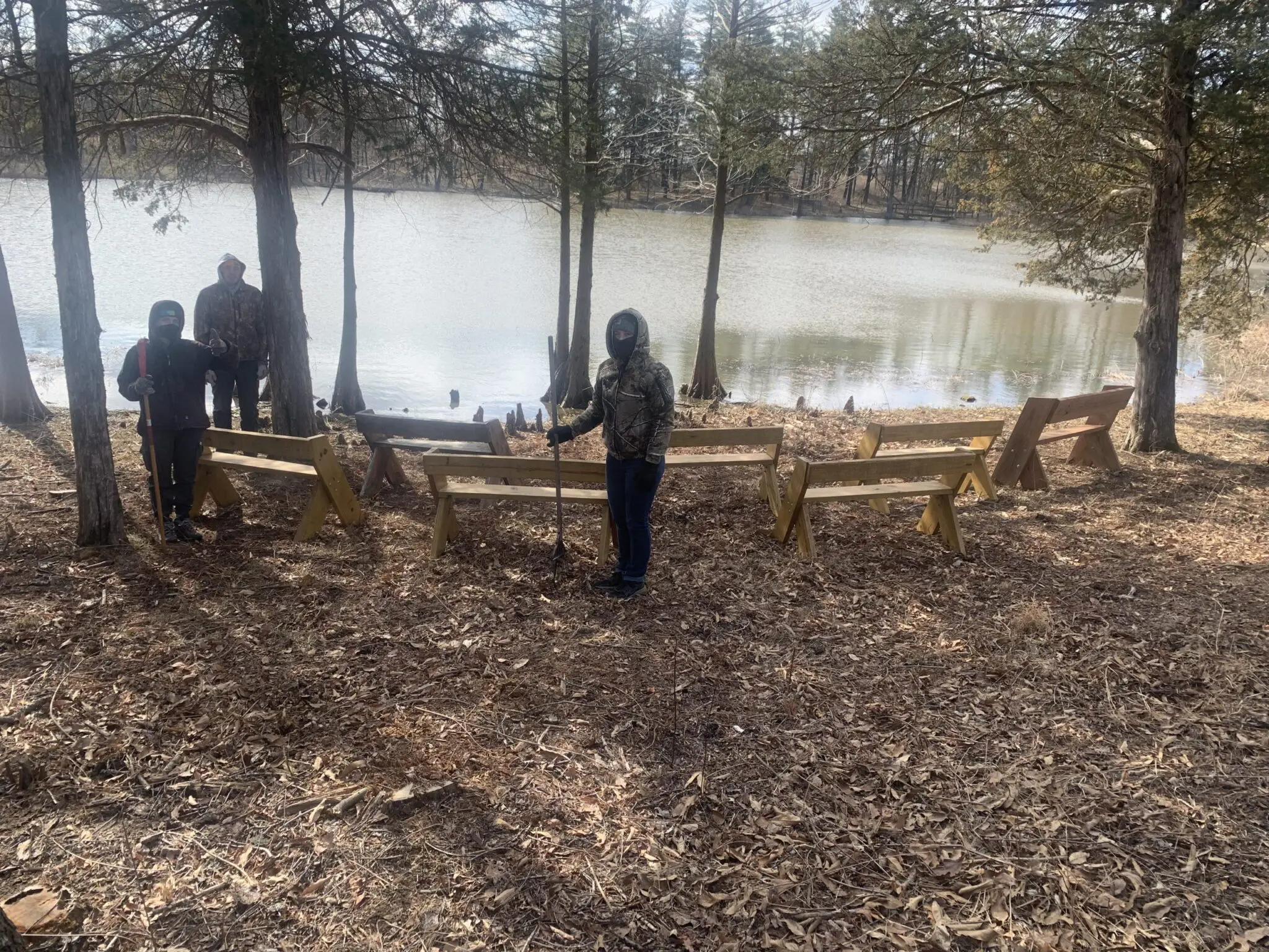 We have several well-defined Outdoor Classrooms. These classrooms are located on our six education trails and each has wooden benches in place.